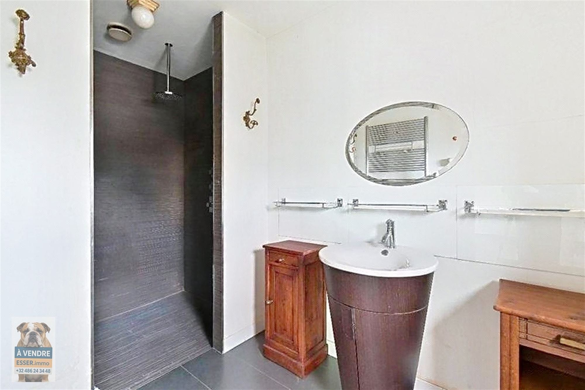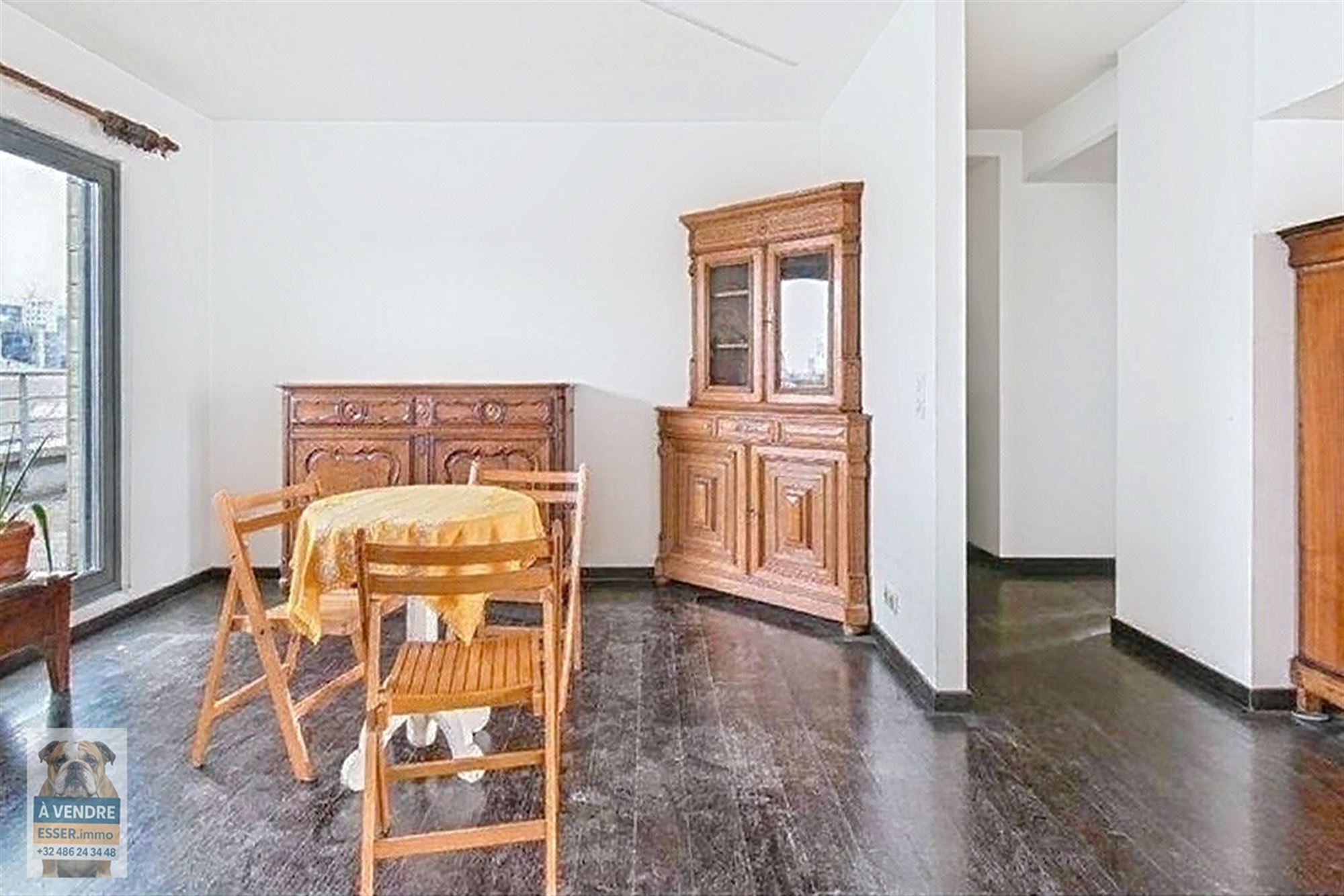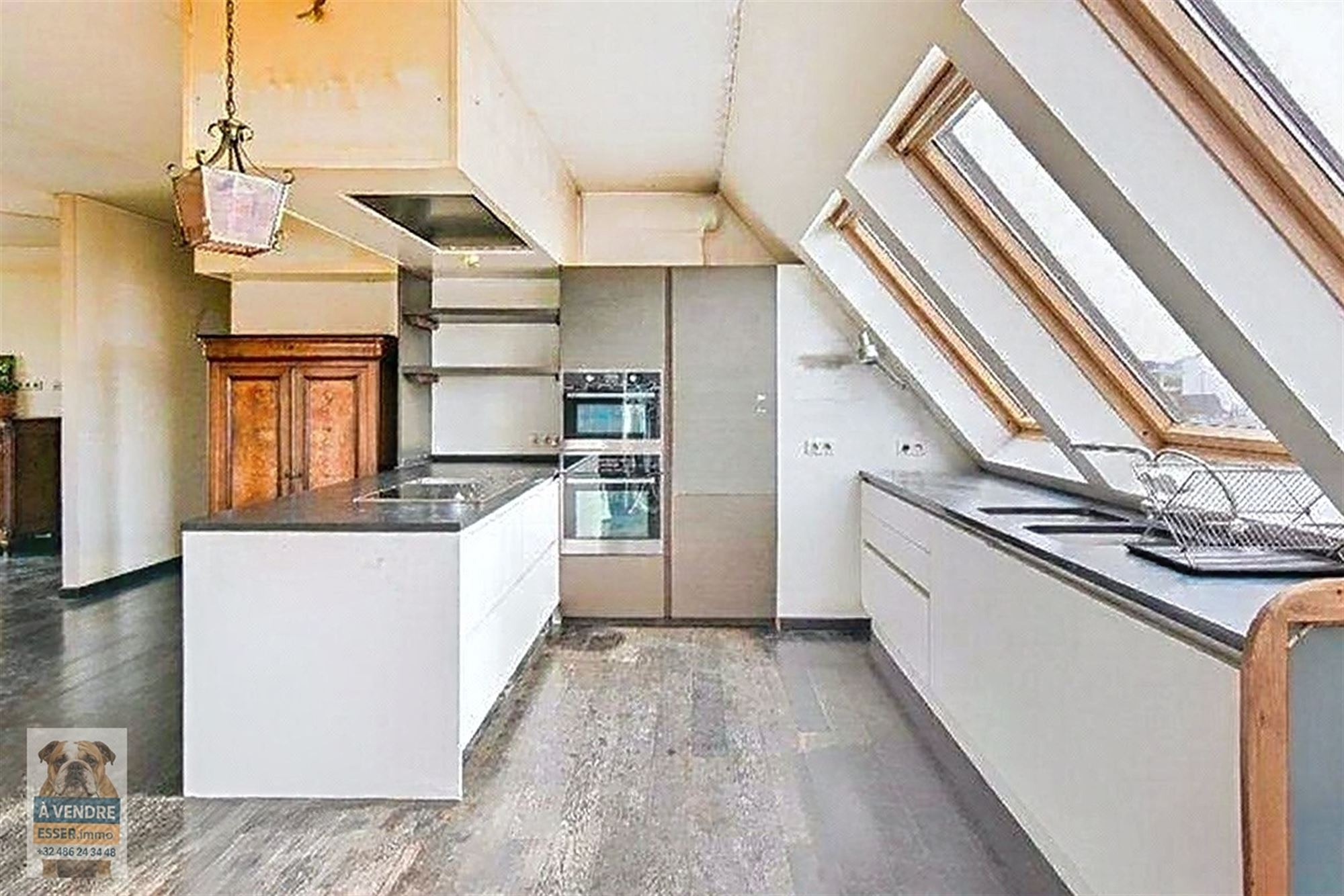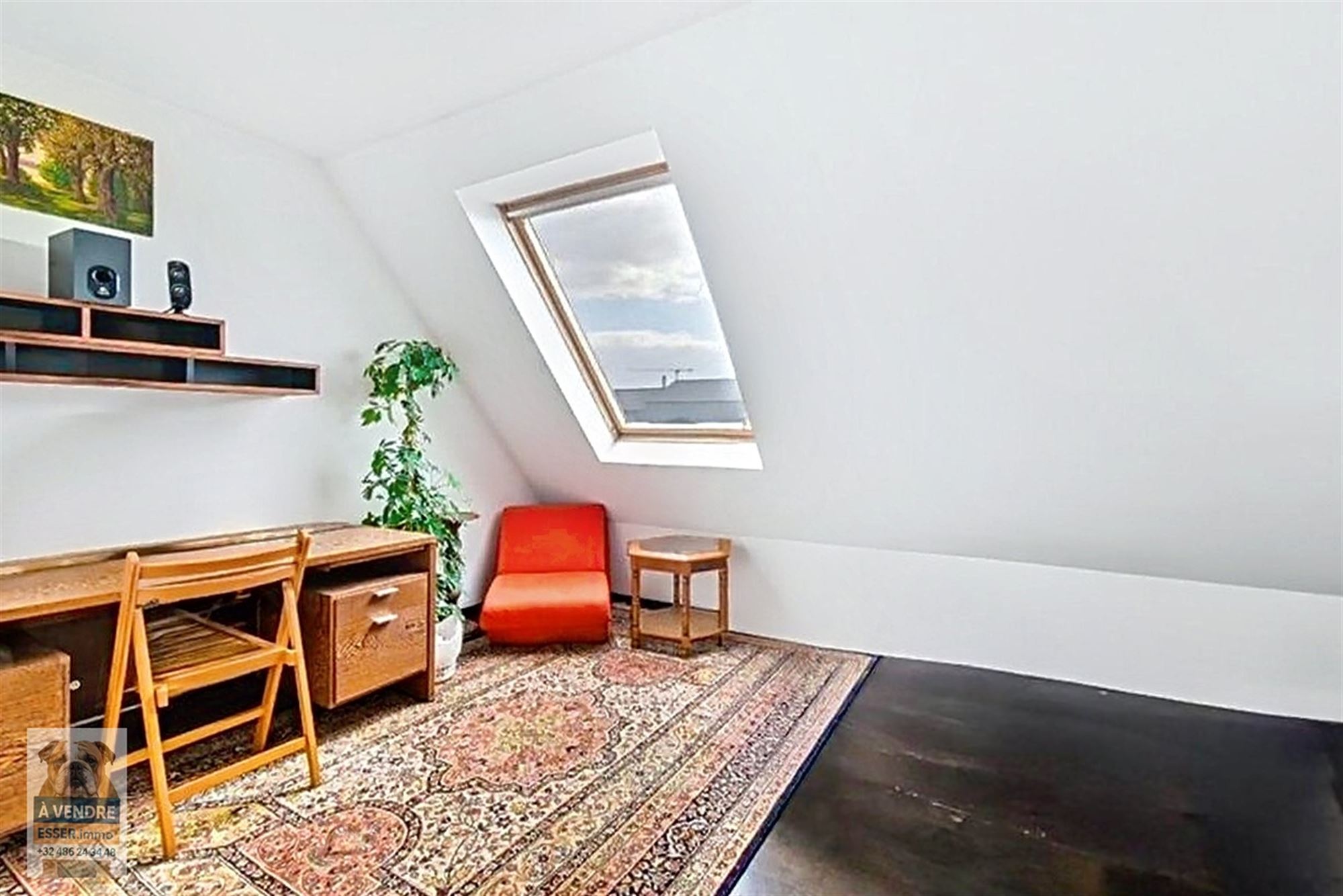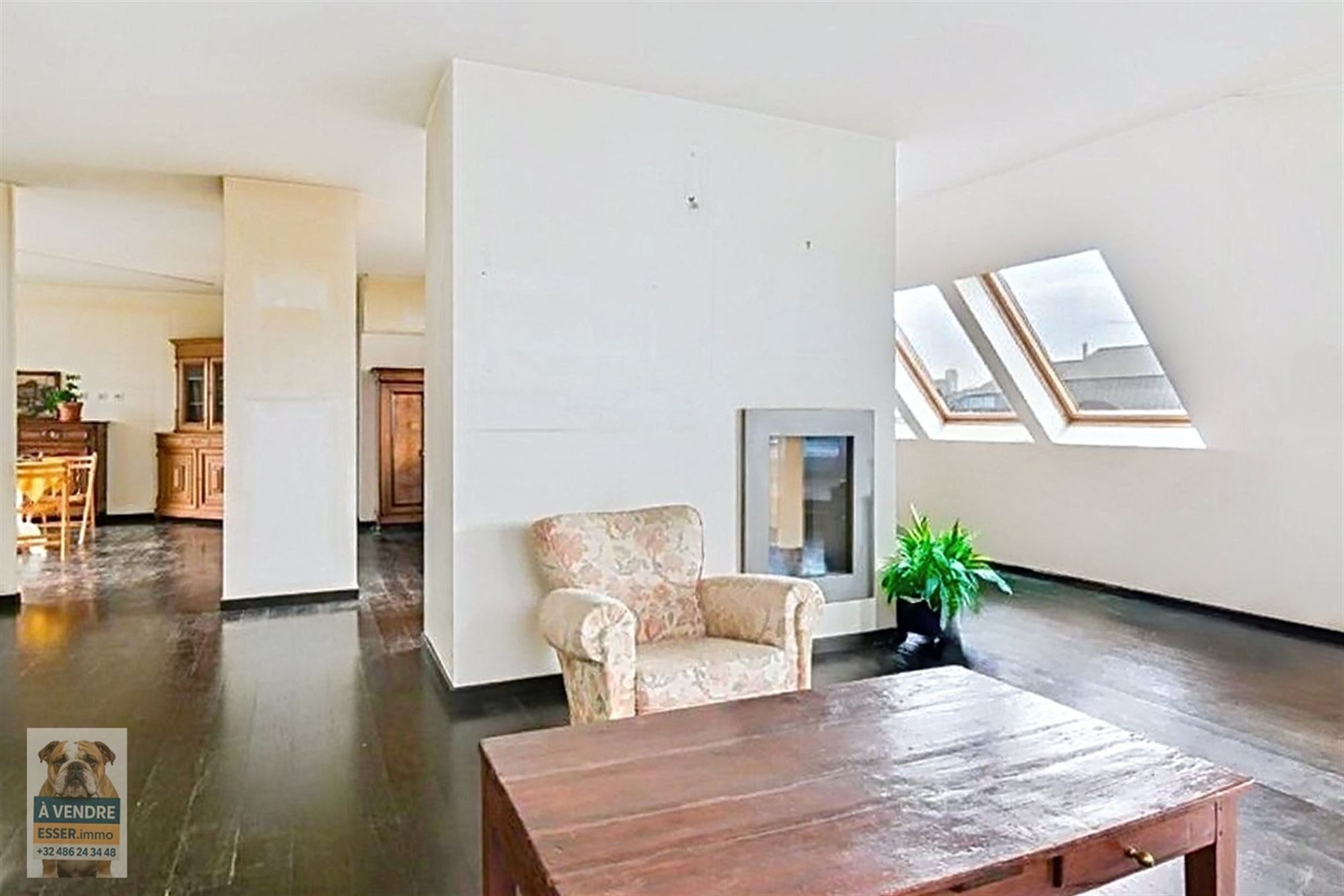 De afwerking versterkt het karakter van de woning, met harmonieuze donkere parketvloeren, een eigentijdse open haard en royale glaspartijen die een warme, verfijnde sfeer creëren. Gelegen in een dynamische wijk, combineert dit appartement authenticiteit met het potentieel voor personalisatie, in de onmiddellijke nabijheid van winkels, vervoer en diensten in Brussel.